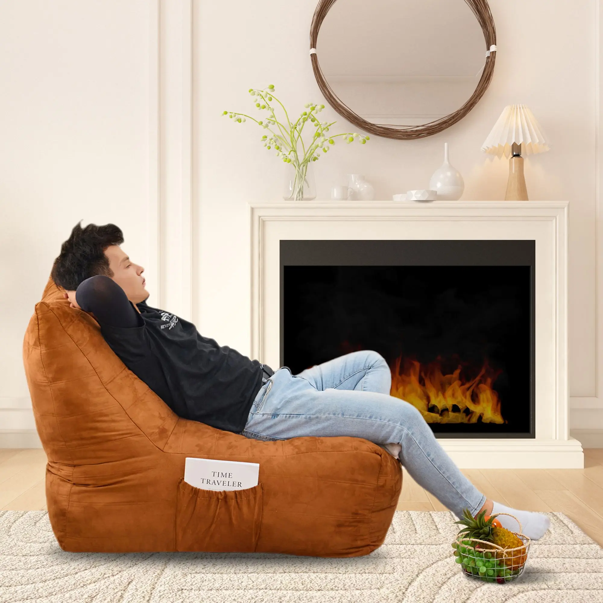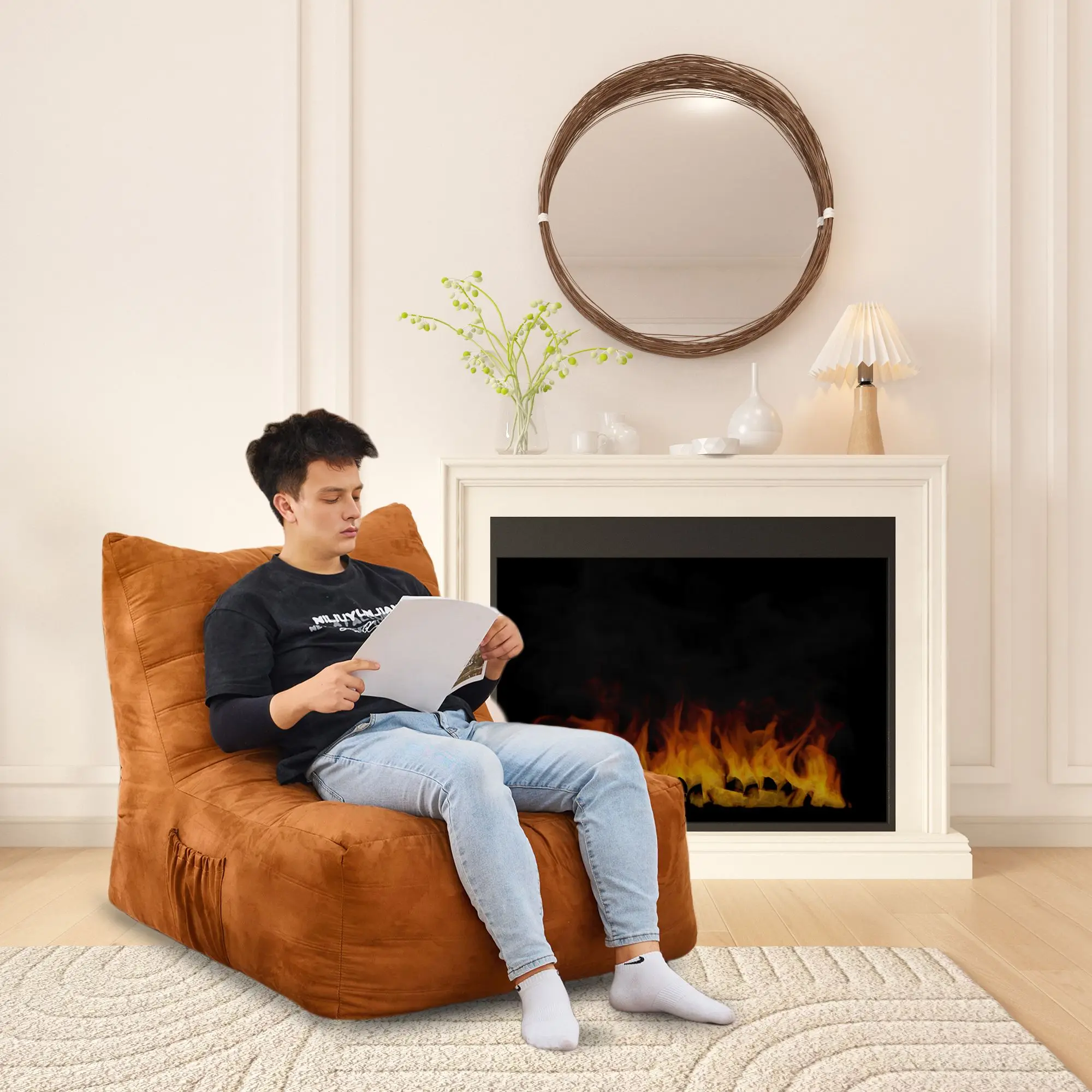 COMFY LAZY CHAIR This sofa chai with pocket is durable and stable. You can use this bean bag chair for a long time. The high-density memory foam filling makes the sofa full and not easy to deform. The ergonomic backrest and armrests are designed to fit the curves of the human body, allowing you to relax your hands and back after a hard day’s work.